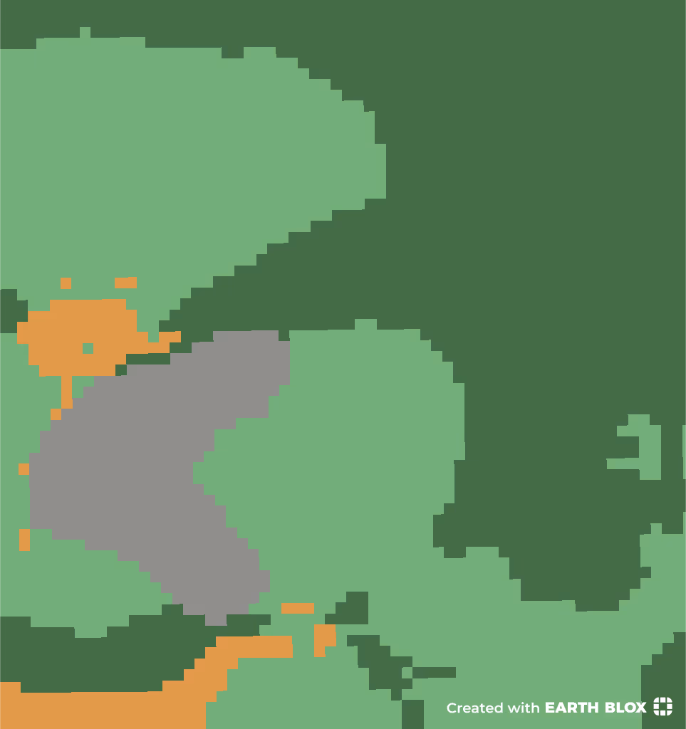 As well as providing a classification map, Dynamic World also offers probability bands (as a %) for each class. The class assigned to the pixel is the class that has the highest probability. It is useful to be able to see the percentage because some pixels may have one dominant class, but for others, the classes may all score very similar values. You can therefore use the % values as an indicator of confidence in the classification. For example, imagine a pixel has been assigned to the TREES class. Sometimes that might be because TREES is 100% and the other eight classes are 0%. But the pixel would have the same class if TREES was only 12% and the other eight classes scored 11%. Clearly, the former pixel is a more reliable classification than the latter. In Earth Blox, it is straightforward to add a block that could, for instance, mask out any pixels that don’t have a high % classification so that users can be confident they are seeing only the most reliable results.
